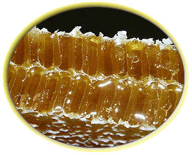 Click to enlarge! There are about as many best ways to get comb honey as there are ways. What's important is for a strong nectar flow be present. This will help the bees fill the comb quickly, and minimize "travel stain" on the comb from propolis in the hive that bees track around on the bottoms of their feet. Some beekeepers use special 4 and 1/2" comb supers that have special frames and accommodate round plastic inserts that sandwich thin foundation. After being taken off the hive, the frames are separated leaving four round sections of comb honey. When the two open sides of these plastic rings are covered, they make a ready-package for sale. Others use a standard shallow frame (with thin foundation) and cut out the comb in squares or rectangles when harvested.